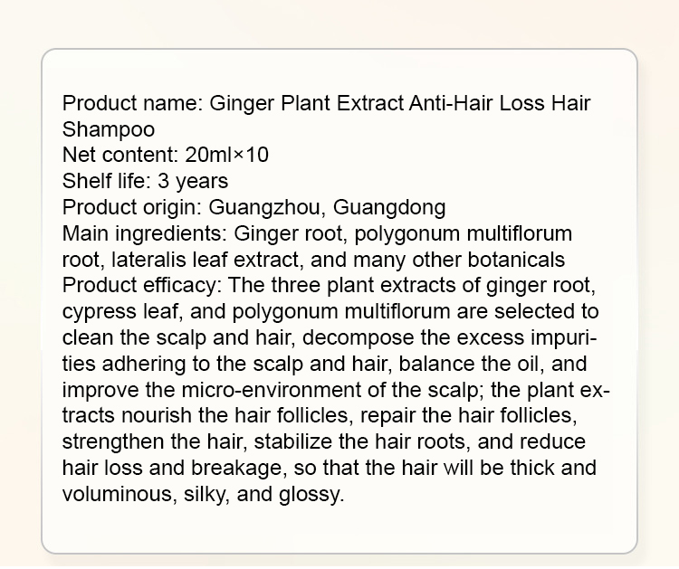 Hot Sale Ginger Plant Extract Anti-Hair Loss Hair Shampoo