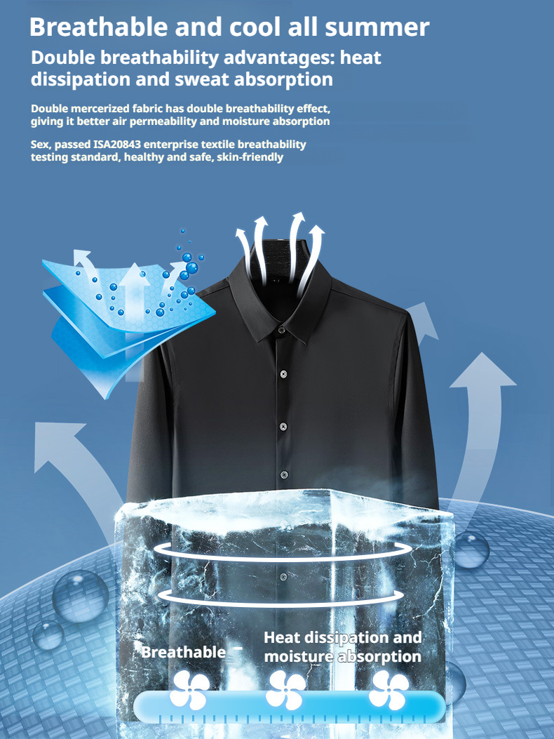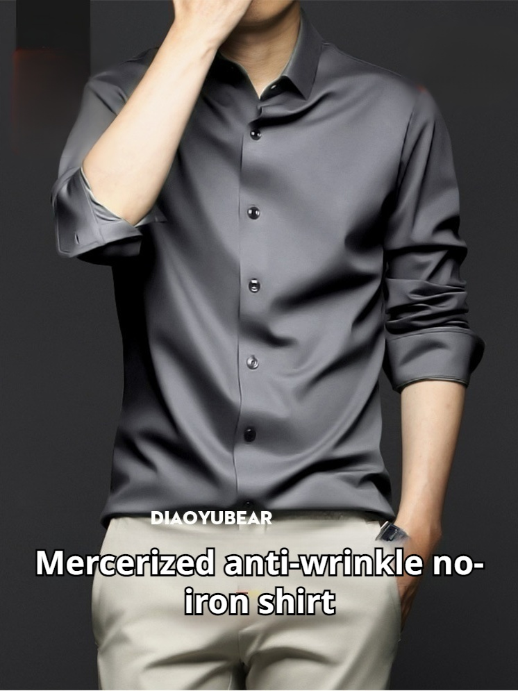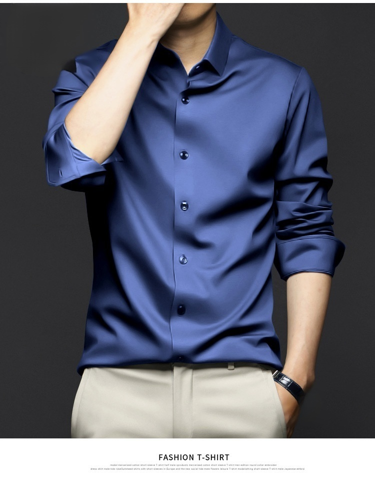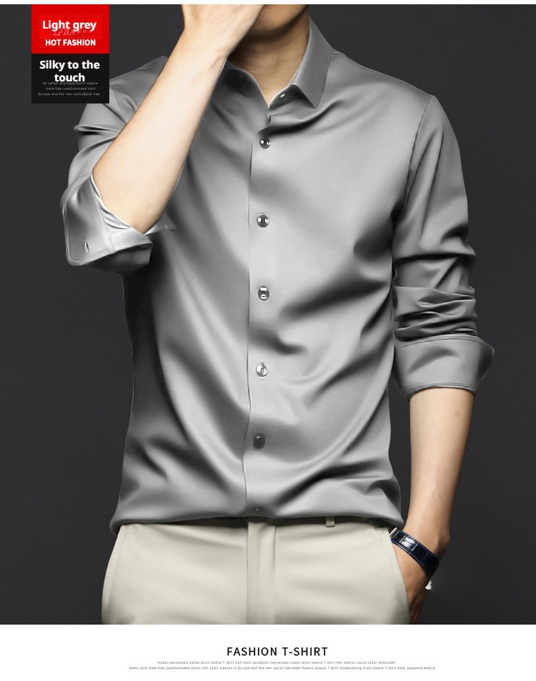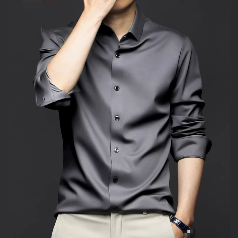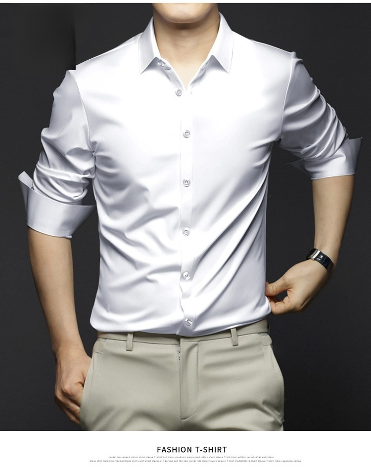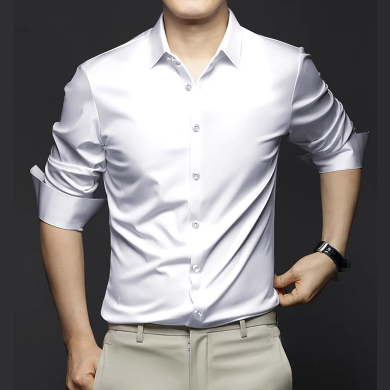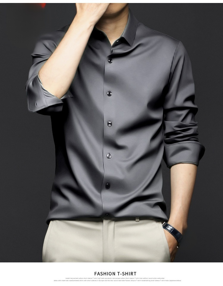 Men's highend ice silk longsleeved shirt comfortable noniron business formal tops