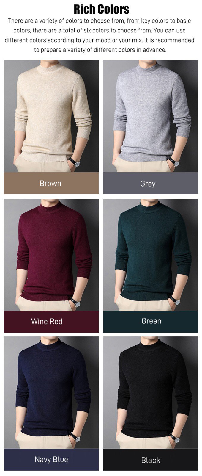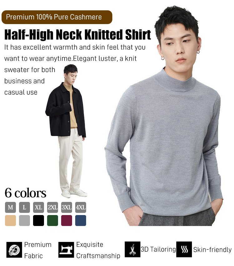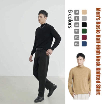 Men‘s Basic Half-High Neck Knitted Shirt