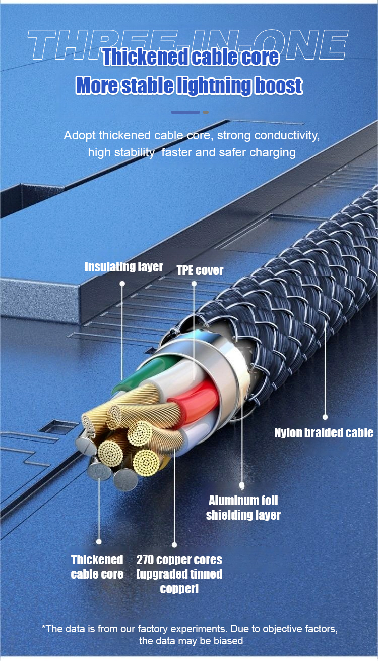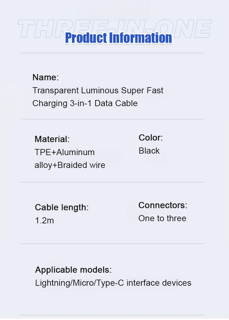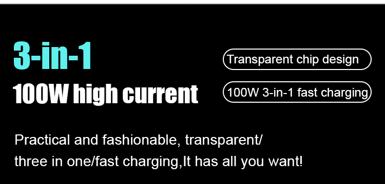 Transparent Luminous Super Fast Charging 3-in-1 Data Cable