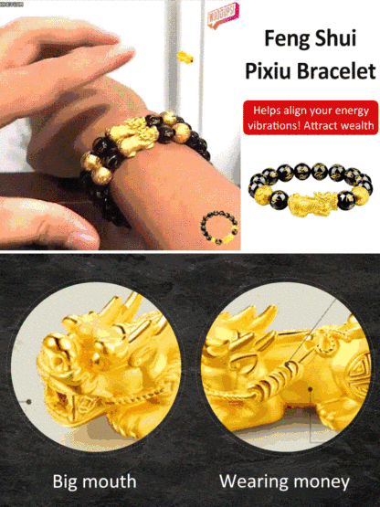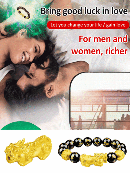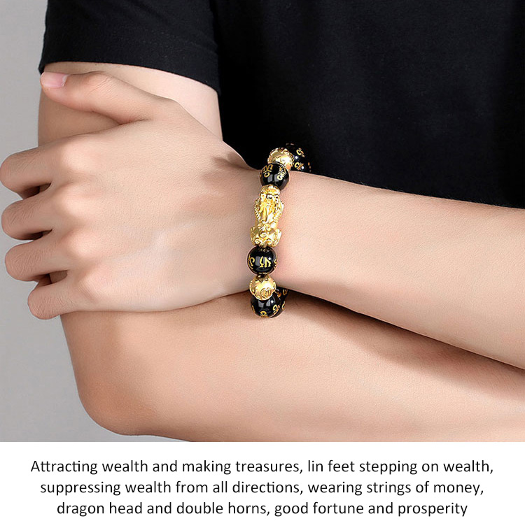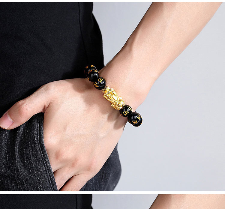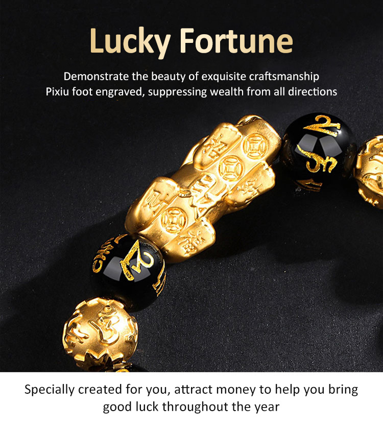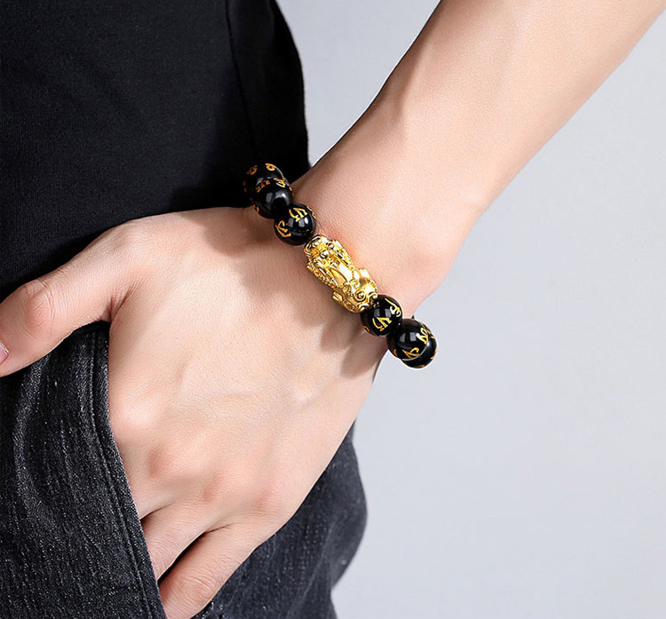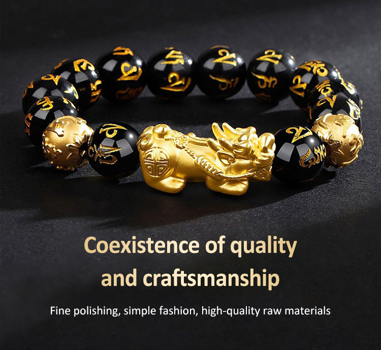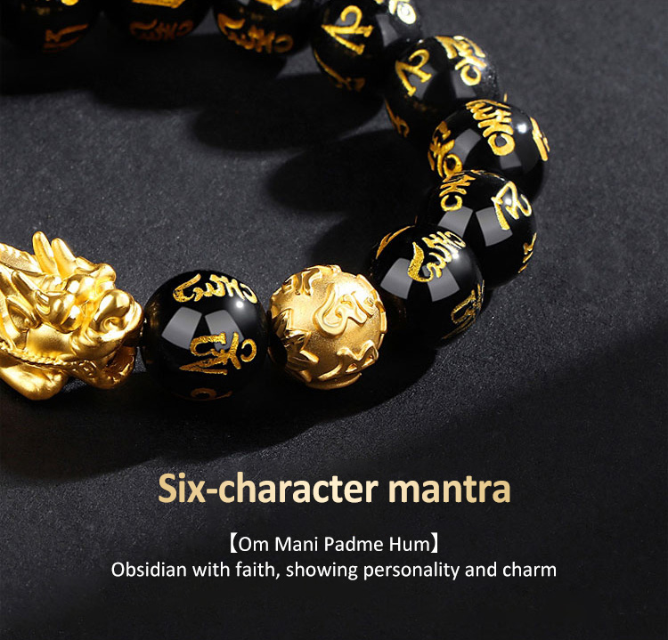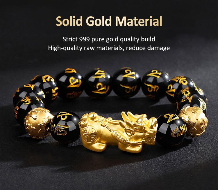 [Fortune and Good Luck Pixiu] Six-Character Mantra Gold Pixiu Bracelet