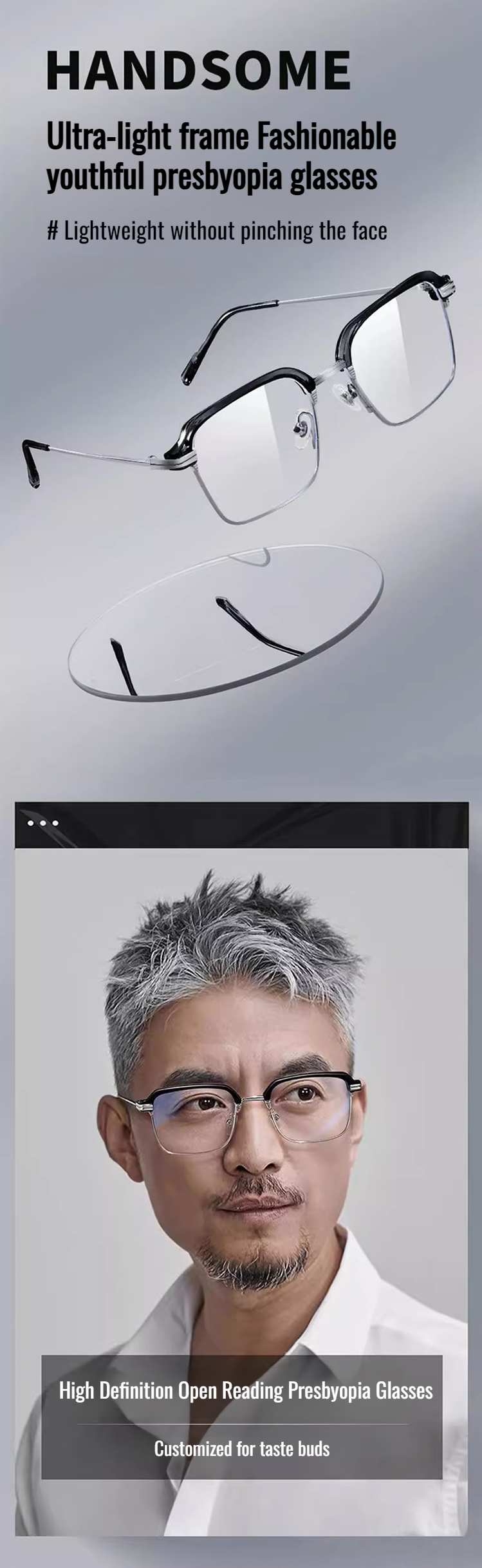 Business men's highdefinition farsighted black technology glasses