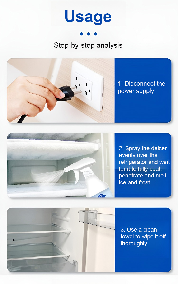 De-icing and defrosting spray for refrigerator and car windshield